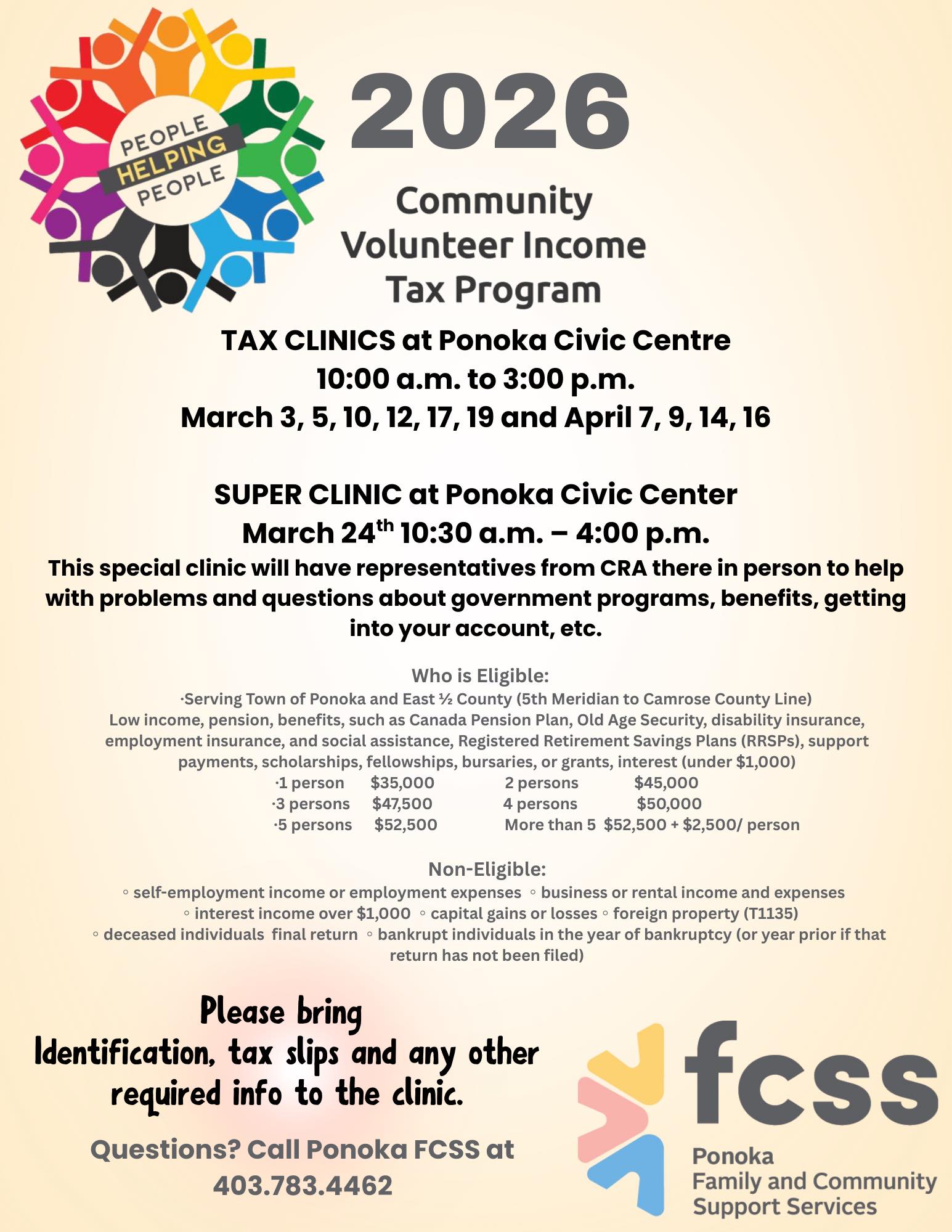 For more information see attached poster or call Ponoka FCSS at 403-783-4462