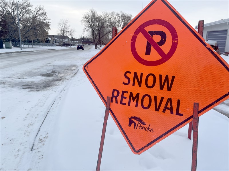 Which sidewalks and pathways does the Town of Ponoka clear?