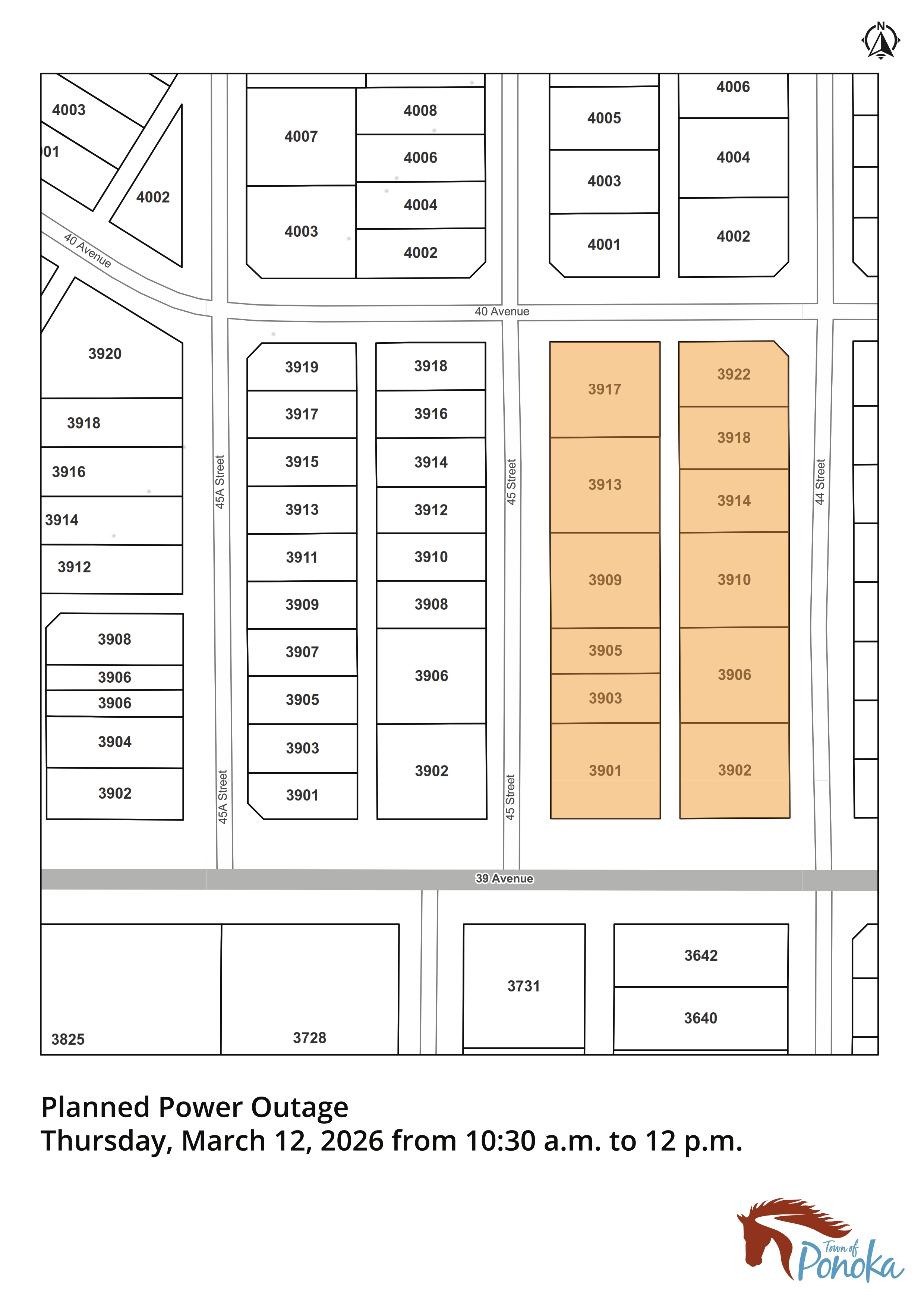 Temporary power outages are scheduled for the Riverside area in Ponoka on Thursday, March 12 (weather permitting) for electrical maintenance at the following locations and time periods: