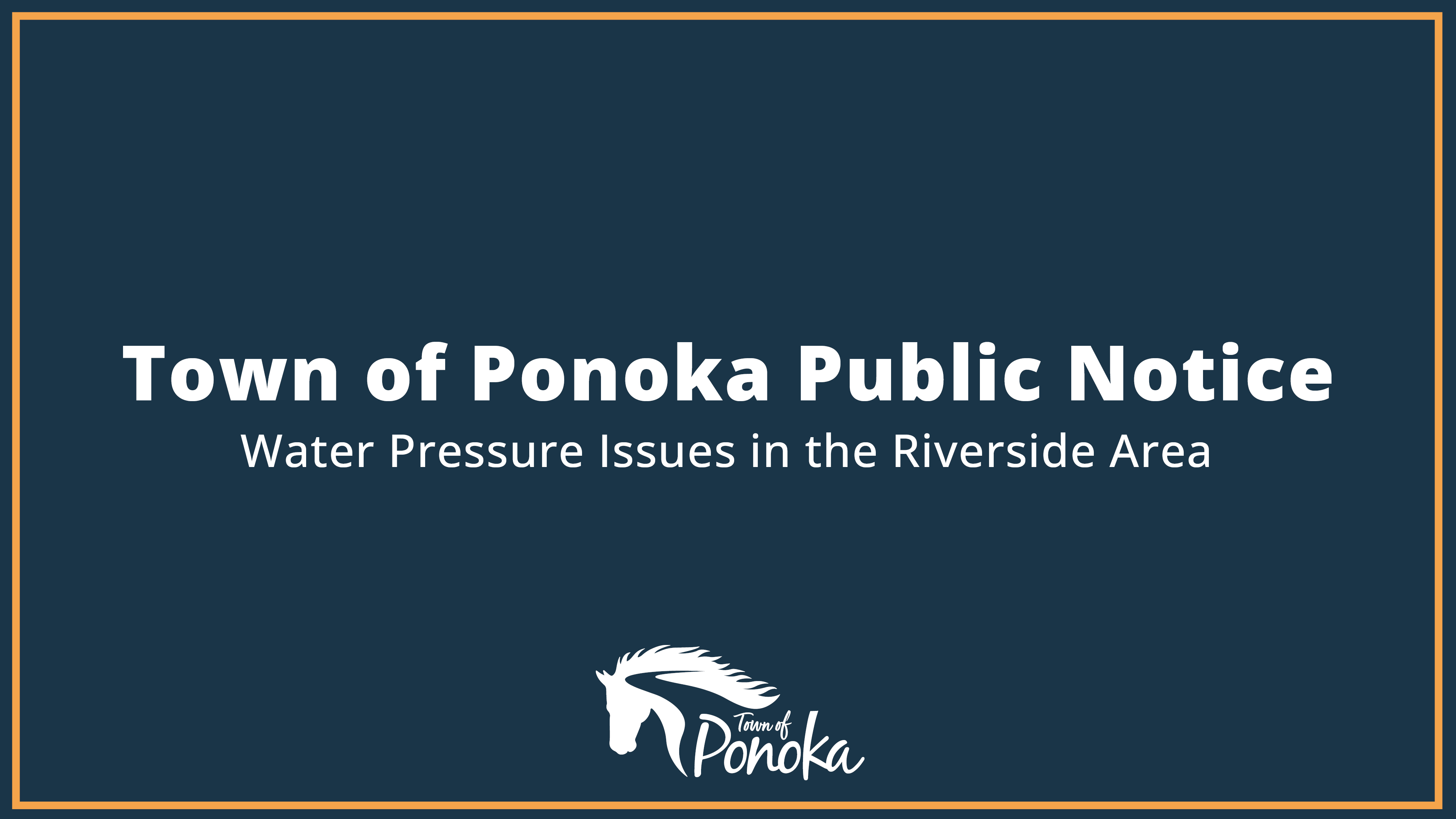 ***Updated: The Town of Ponoka has restored full water pressure to properties in the Riverside area. The water is safe to drink. Residents who notice any cloudiness in the water can run their taps until the water runs clear. Thank you.***