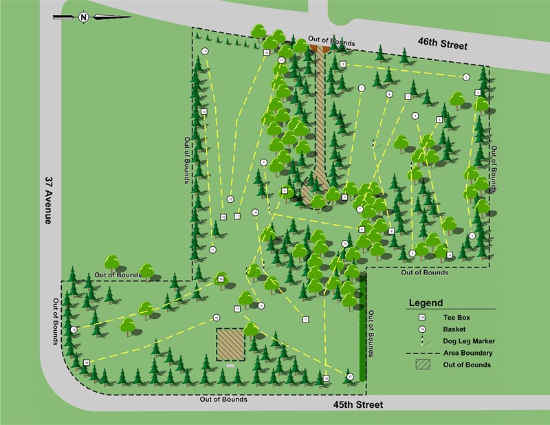 Thanks to a generous donation from Ponoka Arts, Recreation and Culture Society (PARCS), Ponoka now has a new 18-hole disc golf course located at Riverside Rotary Park (3712 46 Street).